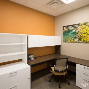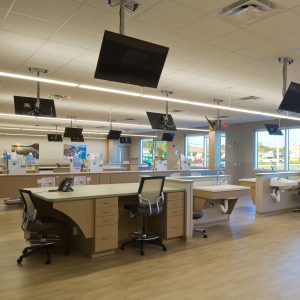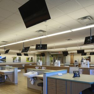 RUSH Construction served as the General Contractor for the tenant improvement and interior build out of the 1st floor, N.E. side, of the Titus Landing Medical Office Building. This 8,250 SF was an unimproved area of the facility. All underground utilities, floor slab, interior framing and drywall, MEP build out were constructed per DaVita Healthcare requirements. The project required extensive millwork, plumbing process piping, as well as, other specialized plumbing requirements for the operation of the Dialysis equipment. This project also included specialized intercom, nurse call systems, fire alarm, fire protection and DaVita sole sourced flooring (epoxy), sheet vinyl, and extensive FRP on the majority of the interior walls. Graphics supplied by the Owner and installed by RUSH.