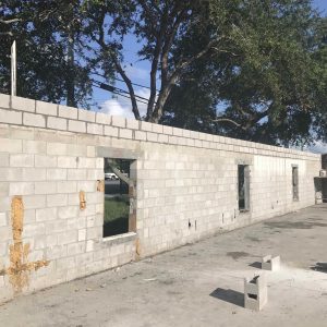 The new shell construction includes raised masonry walls for an increased interior ceiling height, and a new engineered hip roof truss system and shingles. The finishes on the exterior were completed with new painted stucco veneer, doors, and upgraded impact resistant windows.